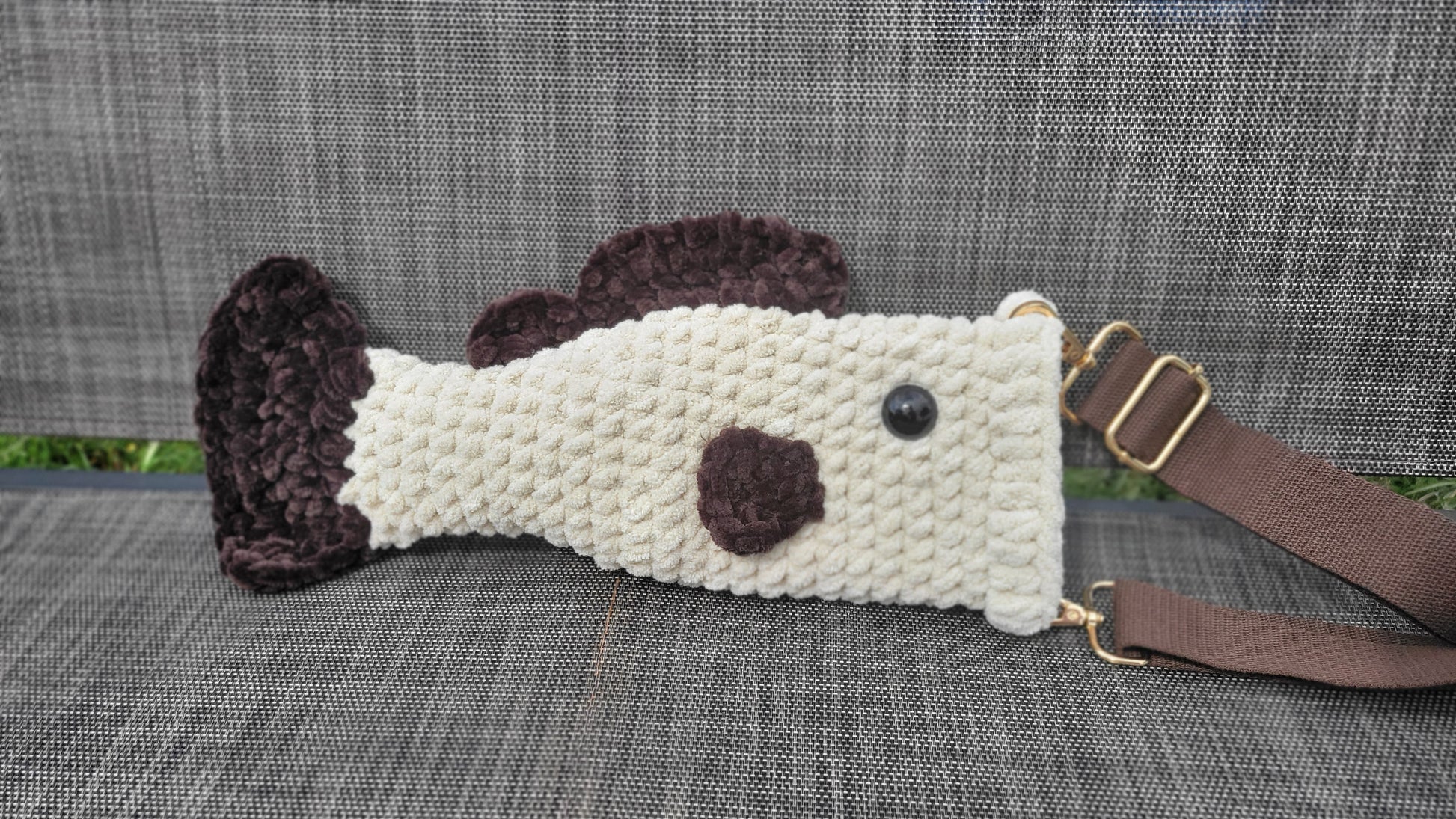 These crossbody fish bags are designed to look like a classic largemouth bass fish. They are sturdy, versatile, and made with lusciously soft yarn. Fits a variety of items such as most phones, wallets, and other treasures or trinkets. Perfect as a gift for any fish lover or as an every-day crossbody bag. Each fish comes with magnetic snaps to close the mouth, an adjustable strap, and a false bottom so your trinkets won't fall into the tail end.